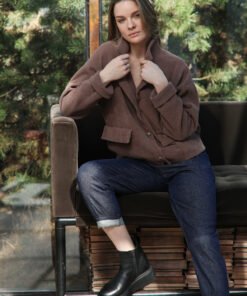 Madingas velvetinis švarkas-bomberis kapučino spalvos